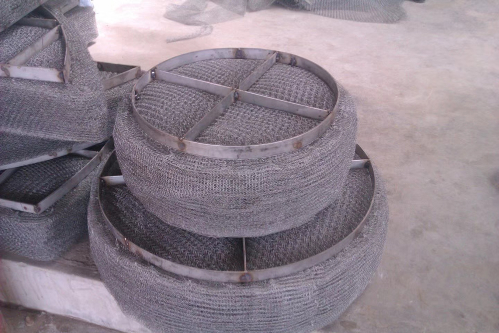 絲網(wǎng)除沫器主要是由絲網(wǎng)、絲網(wǎng)格柵組成絲網(wǎng)塊和固定絲網(wǎng)塊的支承裝置構(gòu)成,絲網(wǎng)為各種材質(zhì)的氣液過濾網(wǎng),氣液過濾網(wǎng)是由金屬絲或非金屬絲組成。氣液過濾網(wǎng)的非金屬絲由多股非金屬纖維捻制而成,亦可為單股非金屬絲。該絲網(wǎng)除沫器不但能濾除懸浮于氣流中的較大液沫,而且能濾除較小和微小液沫,廣泛應(yīng)用于化工、石油、塔器制造、壓力容器等行業(yè)中的氣液分離裝置中。